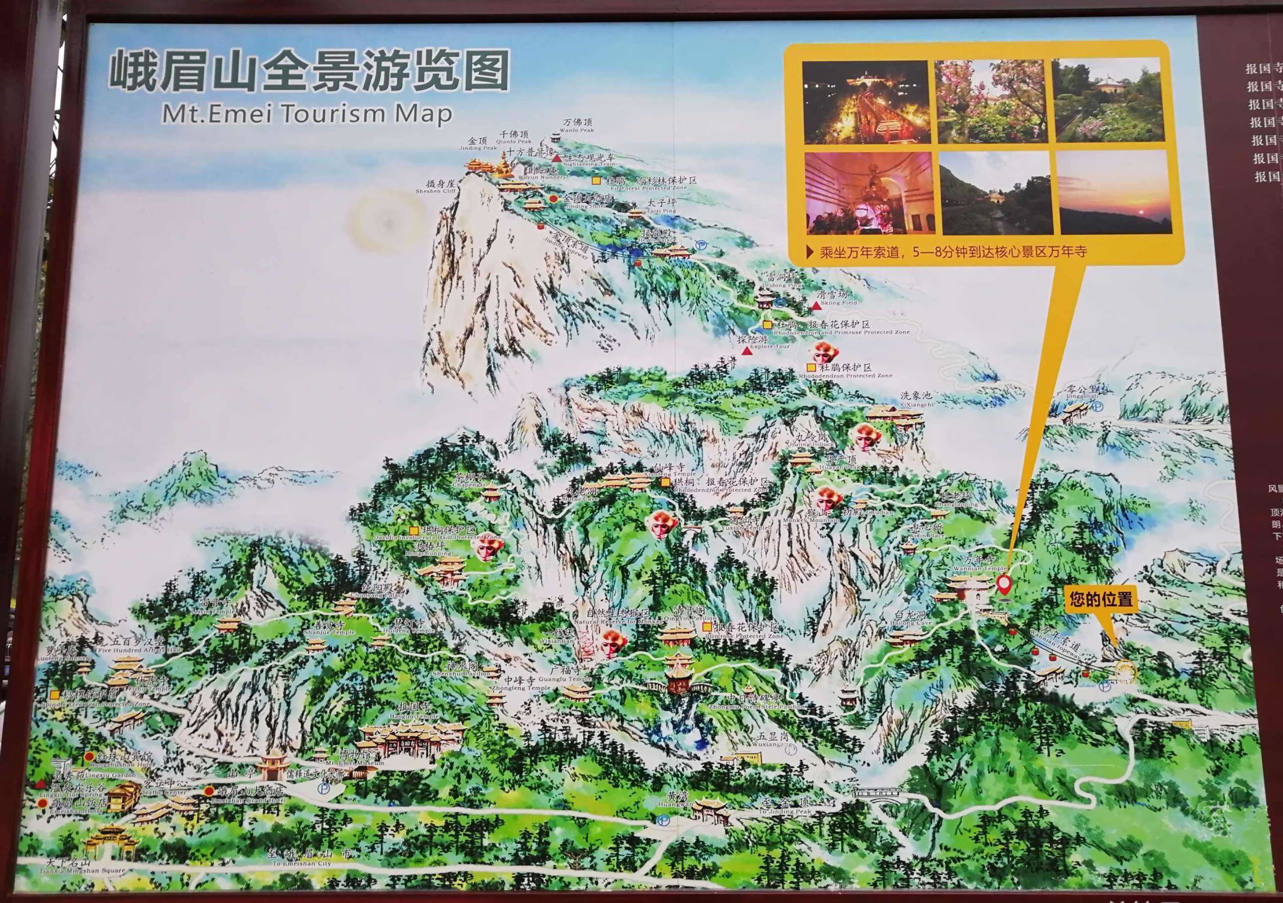 峨眉山(Mount Emei)位于北緯30°附近,四川省西南部,四川盆地的西南邊緣,是中國(guó)“四大佛教名山”之一,地勢(shì)陡峭,風(fēng)景秀麗,素有“峨眉天下秀”之稱,山上的萬(wàn)佛頂最高,海拔3099米,高出峨眉平原2700多米。《峨眉郡志》云:“云鬘凝翠,鬒黛遙妝,真如螓首蛾眉,細(xì)而長(zhǎng),美而艷也,故名峨眉山!