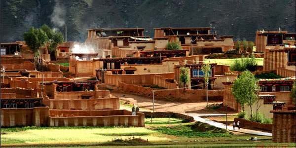 營(yíng)官藏寨:在青山腳下,綠樹(shù)環(huán)抱,小溪流徑之地,遠(yuǎn)遠(yuǎn)地便能看見(jiàn)屋檐下、窗戶的壁墻上勾畫(huà)著象征純潔白線的藏寨民居。一幢幢藏寨民居那么和諧地與大自然構(gòu)成一幅美麗的風(fēng)景。
