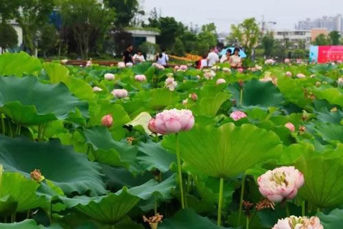 工程實行24小時全天作業(yè)。經(jīng)過緊張有序的施工建設(shè),荷花種植面積共約619畝。計劃種植荷花約20萬株,荷花育苗工作已全面完成,絕大部分已長出嫩芽,成活率達(dá)99.9%。此外,涉水基礎(chǔ)項目水下主體已基本完工,光彩亮化項目預(yù)計6月底基本完工,市政、綠化項目的重要節(jié)點部分在7月底亮相。預(yù)計8月初向市民開放。
