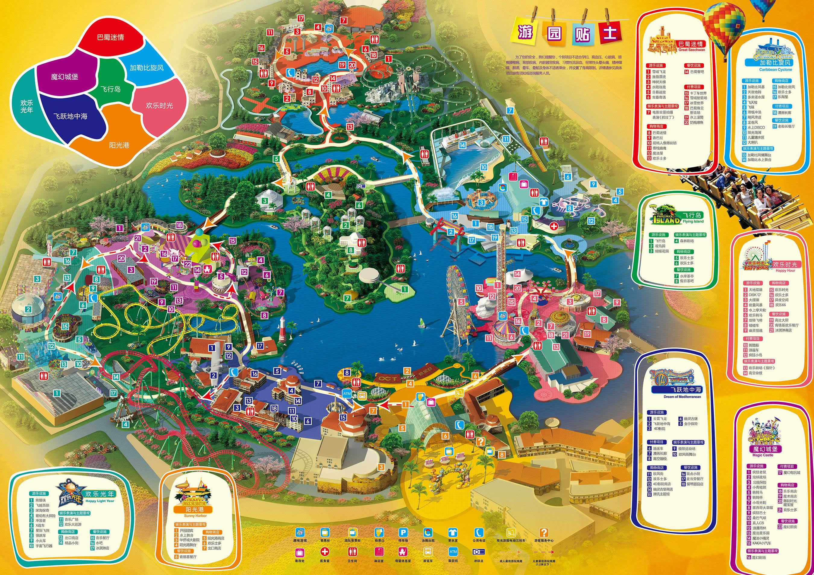 成都歡樂谷占地51萬平方米,由陽光港、歡樂時光、加勒比旋風、巴蜀迷情、飛行島、魔幻城堡、飛躍地中海、歡樂光年及絲路傳奇9大主題區(qū)域組成,擁有百余項景點。其中設置了159項體驗觀賞項目,包括超過54項娛樂設備設施、58處人文生態(tài)景觀、27項藝術表演、20項主題游戲和商業(yè)輔助性項目。