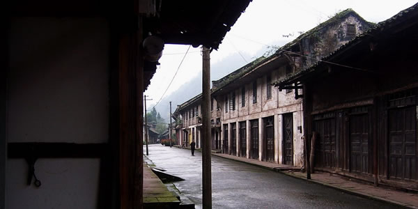 柳江鎮(zhèn)位于洪雅縣城西南25公里花溪河支流柳江兩岸,明末為三溪場,清雍正十二年(1734)柳姜二姓改建易名柳江場。南宋紹興十年(1140)更名明月鎮(zhèn),歷代屢興屢廢。 柳江鎮(zhèn)位于洪雅縣,地處通往瓦屋山國家森林公園的途中,四周青山環(huán)抱,天氣晴朗時還可遠(yuǎn)眺峨嵋群峰。解放前,這里是幾家大戶人家的統(tǒng)轄之地,每戶人家都有特別之處,當(dāng)?shù)厝诉給他們?nèi)×撕糜浀拿郑缯l家房子、誰家谷子等。幾家大戶構(gòu)成了柳江鎮(zhèn)的基礎(chǔ),這些單體的豪宅與秀美的山水幾近完美地組合在一起,加上臨水而建的街市,一幅活脫脫的山水畫卷,現(xiàn)存的有保存完好的特色建筑曾家大院和老街。