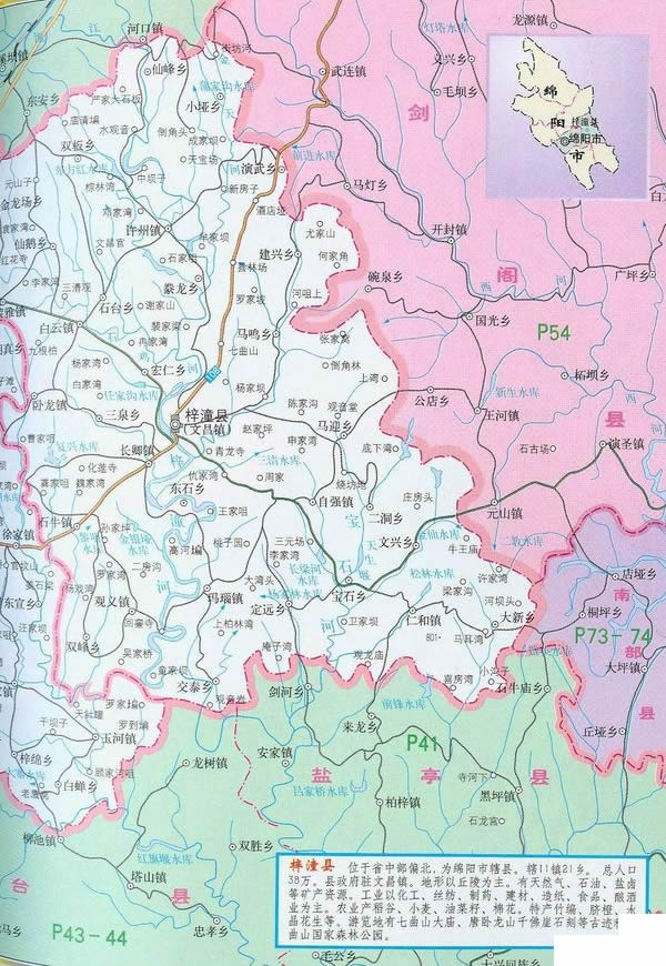 梓潼縣轄11個(gè)鎮(zhèn)、21個(gè)鄉(xiāng):