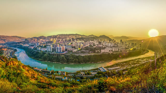 攀枝花市,位于中國西南川滇交界部,金沙江與雅礱江交匯于此。東、北面與四川省涼山彝族自治州的會(huì)理、德昌、鹽源3縣接壤,西、南面與云南省的寧蒗、華坪、永仁3縣交界,總面積7440平方千米;北距成都749千米,南接昆明351千米,是四川省通往華南、東南亞沿邊、沿?诎兜淖罱c(diǎn)。