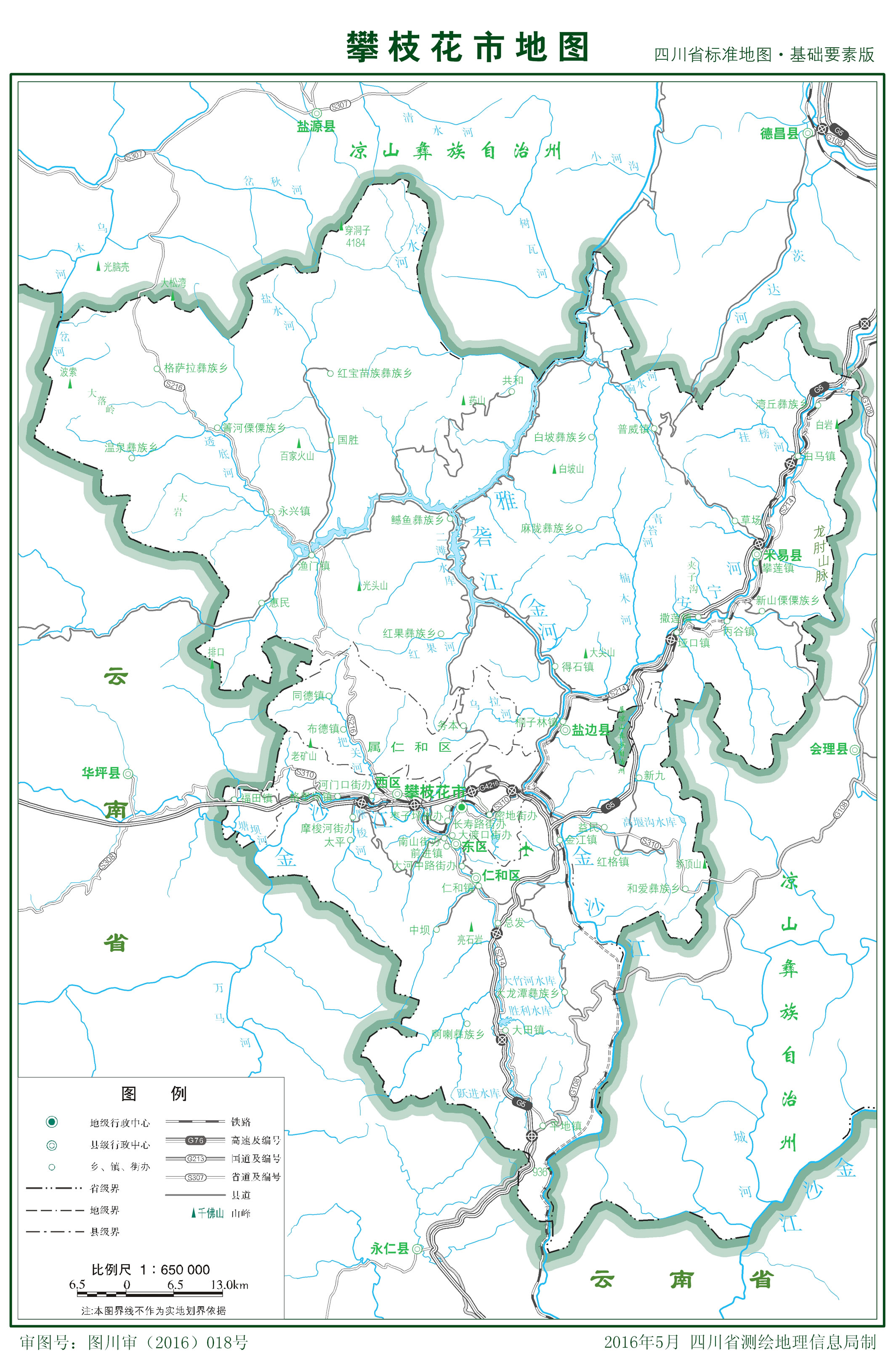 攀枝花市轄3個(gè)市轄區(qū)、2個(gè)縣: