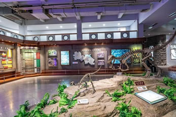 自自貢恐龍博物館的現(xiàn)有基本陳列“侏羅紀(jì)恐龍世界”,按照“恐龍世界——恐龍遺址——恐龍時(shí)代的動(dòng)植物——珍品廳——恐龍?jiān)佻F(xiàn)”順序展開(kāi),吸收現(xiàn)代陳列理念,采用場(chǎng)景式展示、擬人化組合,輔之以聲、光、電及多媒體等展示手段,展開(kāi)了一幅蔚為壯觀、神奇瑰麗史前畫(huà)卷,再現(xiàn)了由恐龍及許多早已消失的物種構(gòu)成的神秘多姿的侏羅紀(jì)時(shí)代。同時(shí),還突出展示了博物館的精華—化石埋藏現(xiàn)場(chǎng),給人以強(qiáng)烈的視覺(jué)沖擊和心靈震撼,充分體現(xiàn)了專業(yè)博物館與遺址博物館的雙重特色。