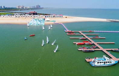 東疆港人工沙灘(東疆灣金沙灘)—天津?yàn)I海新區(qū)首個(gè)人工海灘已經(jīng)建成,藍(lán)色的海水,金色的沙灘,或坐在松軟沙灘上吹海風(fēng),或光著腳丫在鵝卵石帶上散步,撿貝殼、吃燒烤、玩沙灘排球……您用不著走出天津,就能享受“碧海金沙”帶來的樂趣。東疆港人工沙灘所處的位置是天津海岸線最靠近外海,也是水質(zhì)最好的地方。東疆港人工沙灘的“金沙”平均厚度達(dá)1.2米,從岸邊呈緩坡狀一直延伸至海邊。人工沙灘所用的“金沙”全部從福建運(yùn)來,用量近20萬噸。沙灘的緩坡設(shè)計(jì)充分考慮到潮水漲落時(shí)的水流情況,可防止海水退潮時(shí)將“金沙”帶走。為保證游人安全,在公共游樂區(qū)沙灘的近海端鋪設(shè)了一條寬約58米的鵝卵石帶,所用鵝卵石將從秦皇島運(yùn)來。此外,天津港還在附近海域修建防波堤,以保持海灘的潔凈,防止海上漂浮物進(jìn)入人工海灘。