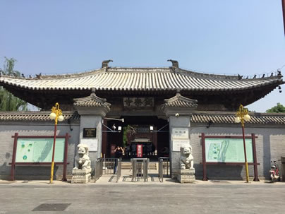 獨樂寺山門是我國現(xiàn)存最早的廡殿頂山門,山門面闊三間,進深兩間,中間做穿堂,正脊兩端的鴟吻,造型生動古樸為,遼代原物。
