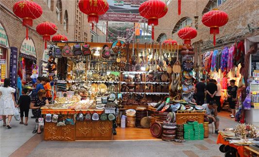旅游工藝精品店――國際大巴扎工藝品店位于國際大巴扎歡樂廣場,專營國際大巴扎品牌旅游紀念品,由專業(yè)設計師繪萃新疆各民族特色文化制作的旅游紀念品,每一件都承載了深厚的文化底蘊,質量上乘,具有一定收藏價值。