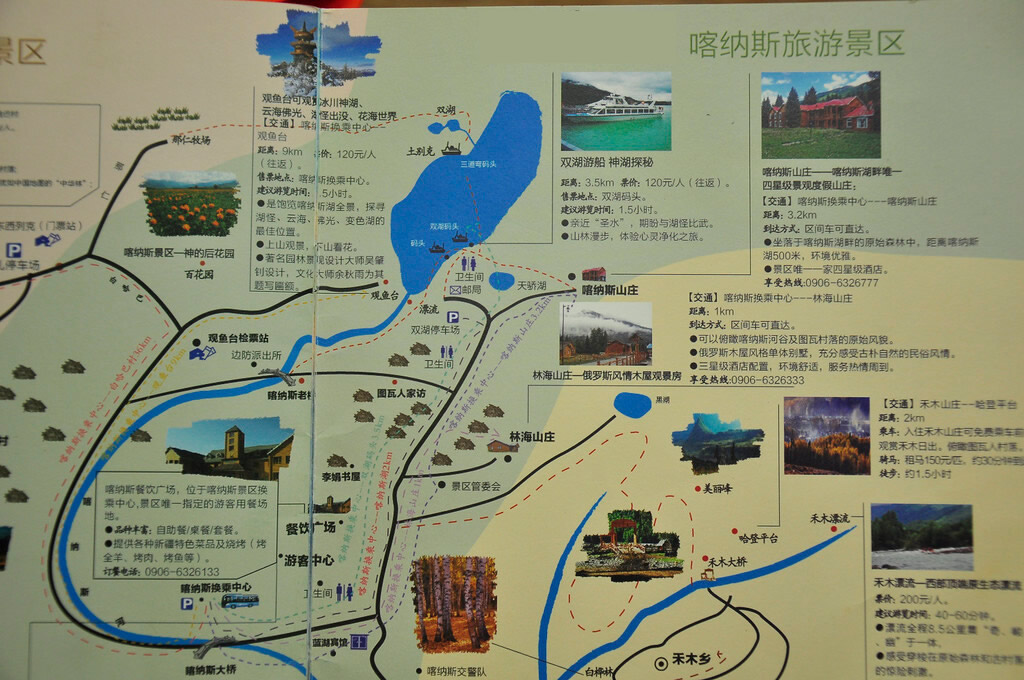喀納斯景區(qū)內共有大小景點55處,分屬33種基本類型,主要包括哈納斯國家級自然保護區(qū)、喀納斯國家地質公園、白哈巴國家森林公園、賈登峪國家森林公園、喀納斯河谷、禾木河谷、那仁草原、禾木草原及禾木村、白哈巴村、喀納斯村等國內外享有盛名的八大自然景觀區(qū)和三大人文景觀區(qū)。