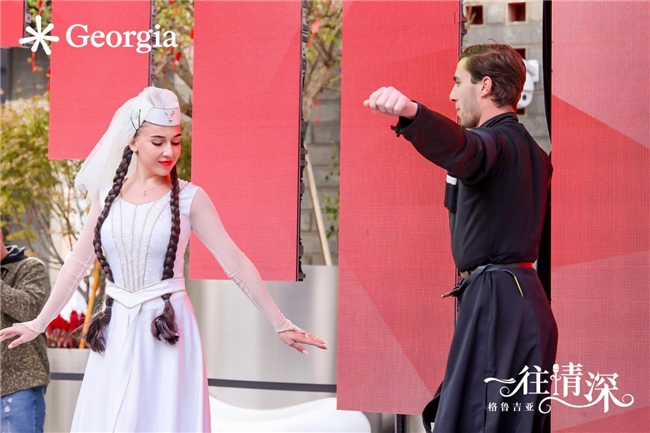 活動現(xiàn)場精心打造四季沉浸式體驗區(qū),讓游客得以近距離感受格魯吉亞的獨特魅力。在春日山谷,身穿民族服飾的舞者,以豪邁的旋轉與鏗鏘的踏步,再現(xiàn)高山民族的堅韌與深情,足尖起落間仿佛踏響高加索的山河韻律。