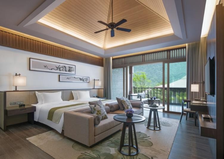 若向往與山林萬物共呼吸的隱逸,天目山都喜天麗酒店便坐落于天目山山麓的綠意深處。這里依山而棲,推窗即見連綿竹海與參天古木,每一次呼吸都能吸入高達13萬/cm³的負氧離子。酒店將泰式殷勤好客與江南山野靈氣相融合,既可漫步幽徑聆聽溪澗與鳥鳴,亦可在沉浸自然的客房中靜享遠離塵囂的安寧,身心皆被純粹自然溫柔包裹。