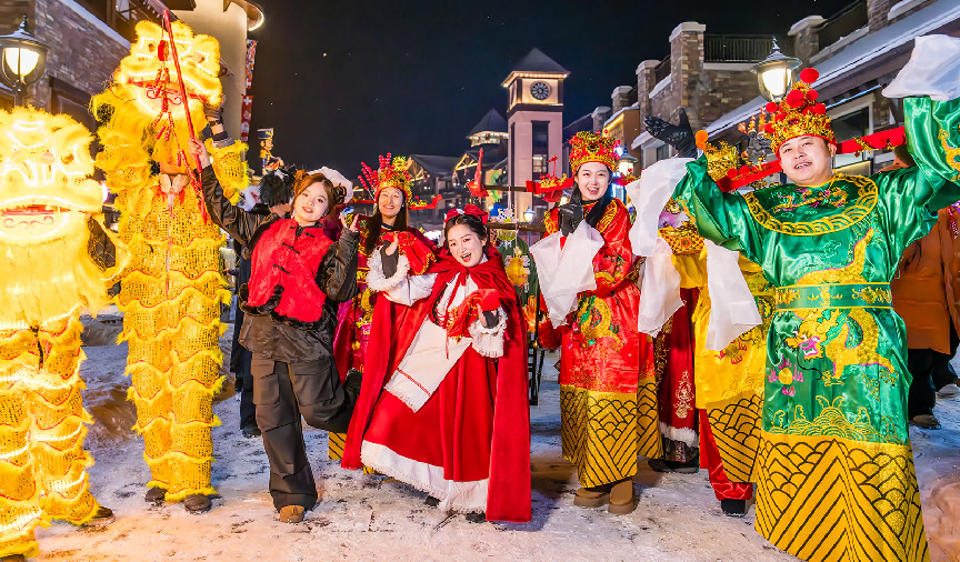 在長(zhǎng)白山華美勝地,度假區(qū)打造“日間滑雪+晚間市集+夜間演藝”沉浸式體驗(yàn)圈,為游客營(yíng)造置身冰雪童話世界的度假體驗(yàn)。