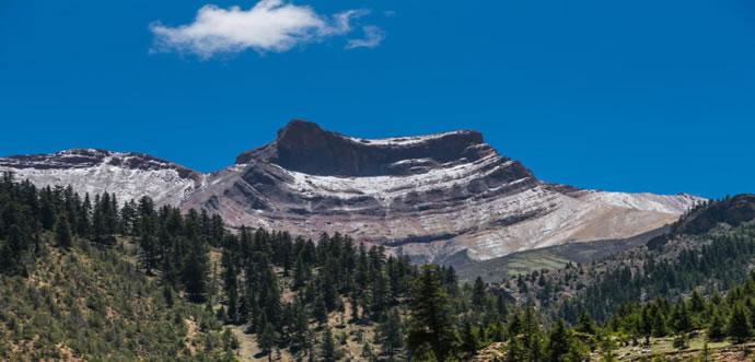 珠姆馬鞍山屹立在洛隆縣東大門,傳說,此山是格薩爾王王妃--珠姆的坐騎幻化而成,所以形似駿馬,而其馬背上的馬鞍(山峰的形狀)既如同能工巧匠精心雕刻出來的馬鞍,又像畫家們畫出來的真實馬鞍。其周圍山的形狀猶如珠姆王妃用過的帳篷、燒牛奶和奶渣的銅鍋、羊圈等,妙不可言。