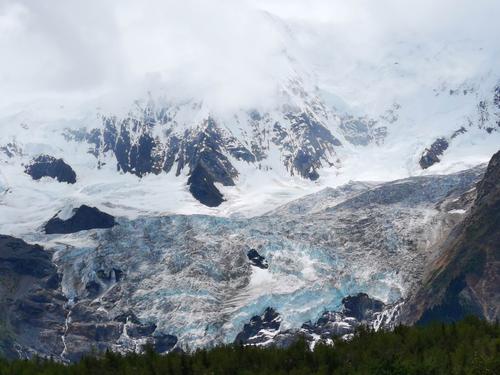 冰瀑奇觀只有在補充豐富、消融得快的冰川上才會出現(xiàn),如消融快而補給不足,冰瀑就會中斷,形成“懸冰川”;而補充過快而消融不及,冰雪就會把懸崖埋沒。米堆冰川是一條補充和消融都很“均衡”的具有靈性的冰川。