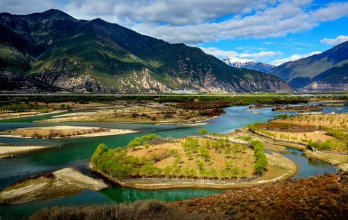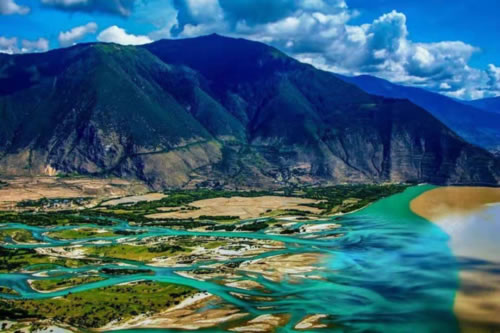 從空中或從西興拉等山口鳥(niǎo)瞰大峽谷,在東喜馬拉雅山無(wú)數(shù)雪峰和碧綠的群山之中,雅魯藏布江硬是切出一條筆陡的峽谷,穿越高山屏障,圍繞南迦巴瓦峰作奇特的大拐彎,南瀉注入印度洋,其壯麗奇特?zé)o與倫比。