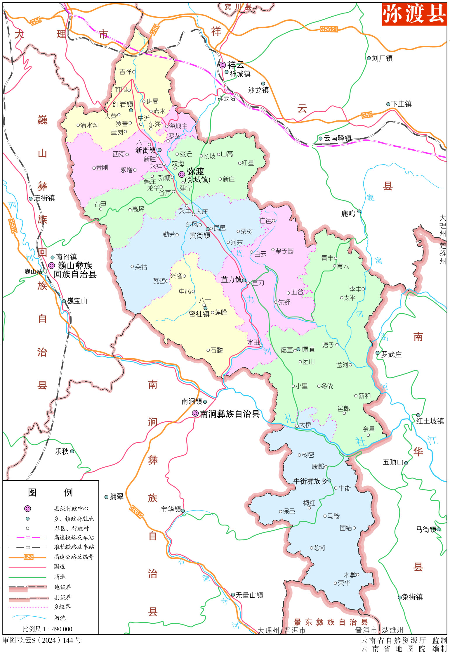 鎮(zhèn):彌城鎮(zhèn)、紅巖鎮(zhèn)、新街鎮(zhèn)、寅街鎮(zhèn)、苴力鎮(zhèn)、密祉鎮(zhèn)