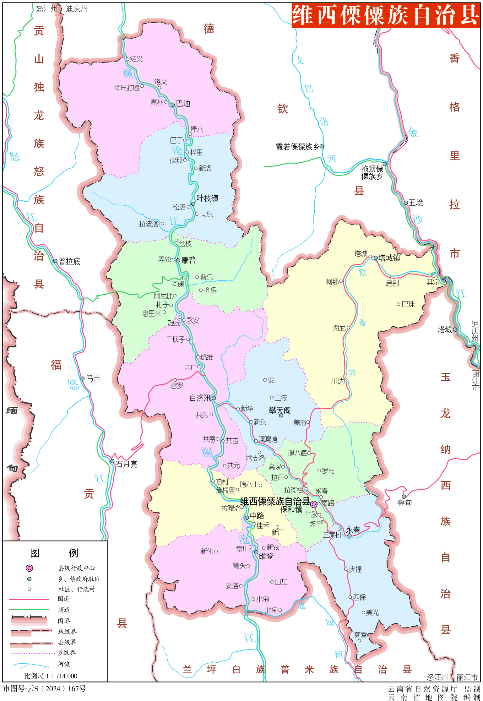 維西傈僳族自治縣轄3個(gè)鎮(zhèn)、7個(gè)鄉(xiāng):