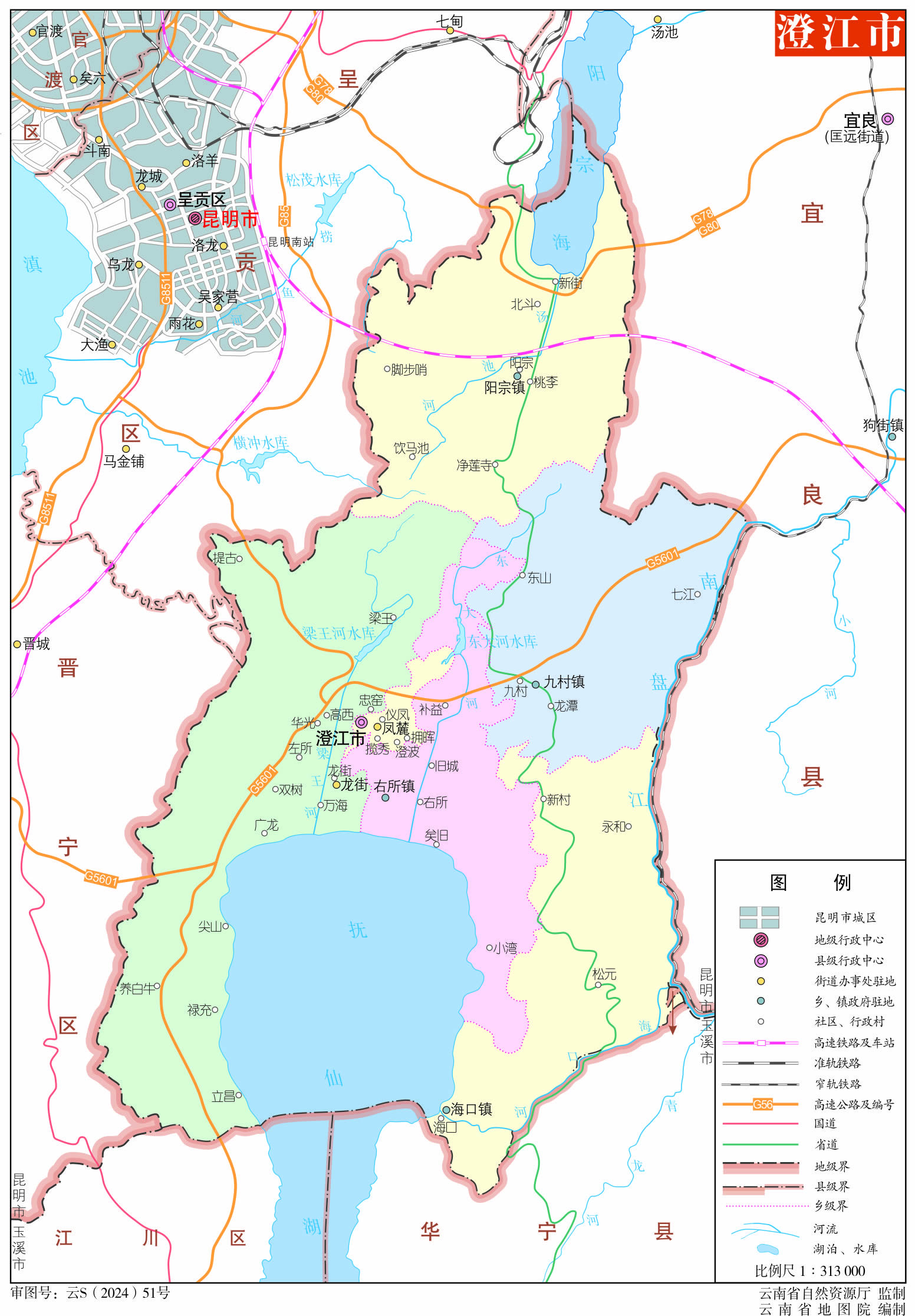 玉溪市江川區(qū)地圖