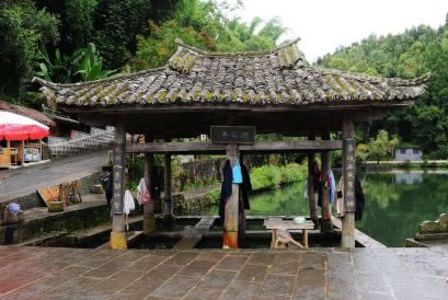 繼續(xù)沿著小河和荷塘走,每隔一段會(huì)有一個(gè)古樸典雅的小亭子,在水邊矗立,村婦在小亭子里洗衣,這是全國(guó)獨(dú)有的洗衣亭,在和順有六座。洗衣亭可以洗衣,納涼,也可以遙望遠(yuǎn)方,寄托相思。