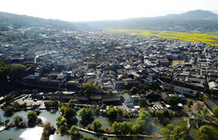 居民以內(nèi)地遷來(lái)的漢族為主,全鎮(zhèn)住宅從東到西、環(huán)山而建,漸次遞升,綿延兩三公里。一座座古剎、祠堂、明清古建疏疏落落圍繞著這塊小壩子。