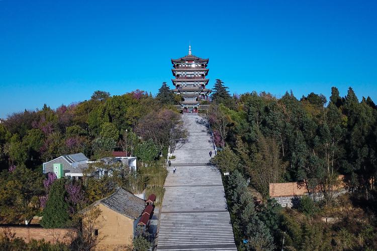 三臺(tái)山位于滇池東岸,海拔高度1956米,因山勢(shì)三疊成臺(tái)而得名。中臺(tái)形如鳳翥,又稱(chēng)鳳嶺。滿(mǎn)山松柏蔭翳,古木參天,為呈貢十六景之一。三臺(tái)山是觀賞滇池全貌的最佳點(diǎn)之一,園內(nèi)有望海廊、東驤閣。