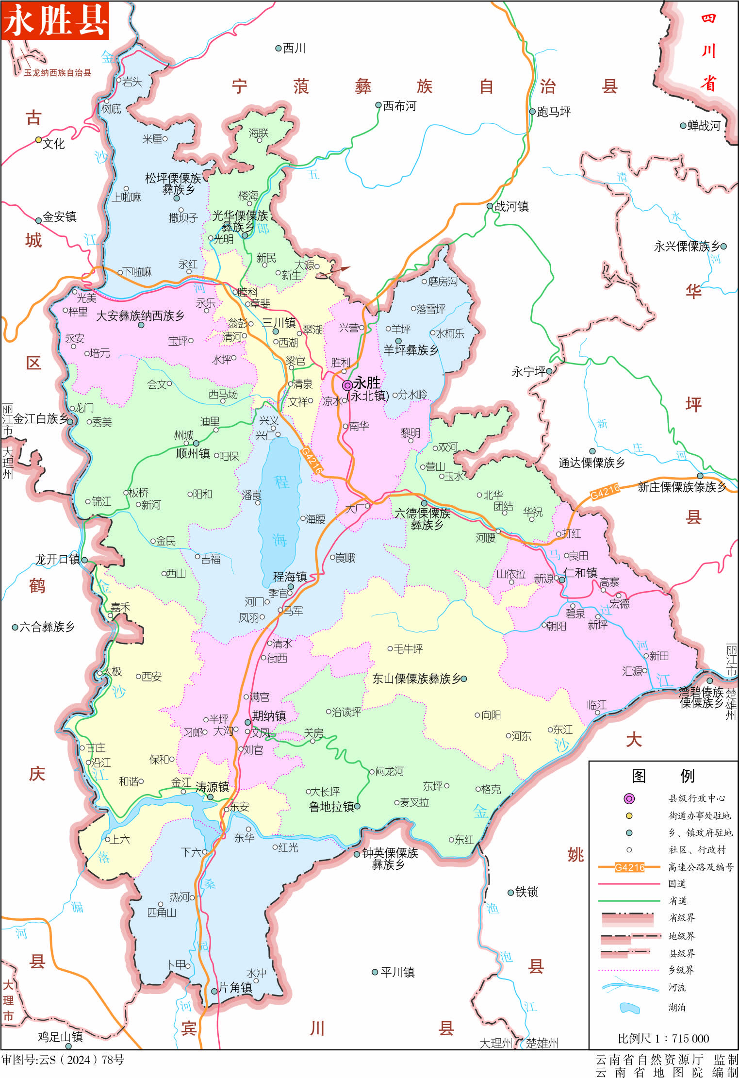 鎮(zhèn):永北鎮(zhèn)、仁和鎮(zhèn)、期納鎮(zhèn)、三川鎮(zhèn)、濤源鎮(zhèn)、程海鎮(zhèn)、魯?shù)乩?zhèn)、片角鎮(zhèn)、順州鎮(zhèn)