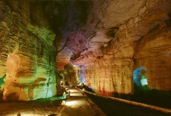 龍宮洞,又名豪豬洞,位于華坪縣楠木鄉(xiāng)梭羅箐,距縣城9公里。該洞內(nèi)大廳高達(dá)9米,寬20多平方丈,有地下河相連。