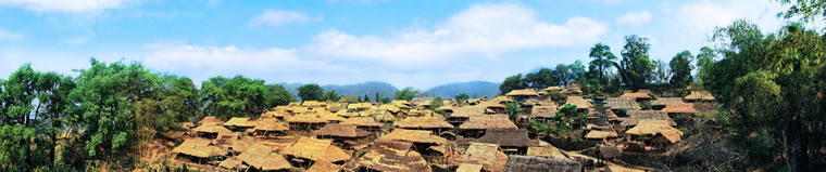 翁丁的“翁”為水,“丁”為接,翁丁,意為連接之水。該地有幾條小河相互連接,以此得名。翁丁原始村落距縣城30千米,屬勐角鄉(xiāng)管轄范圍,共有98戶人家,400多人。因為該村還保留著許多佤家的傳統(tǒng)習俗和信仰而稱之為原始村落。