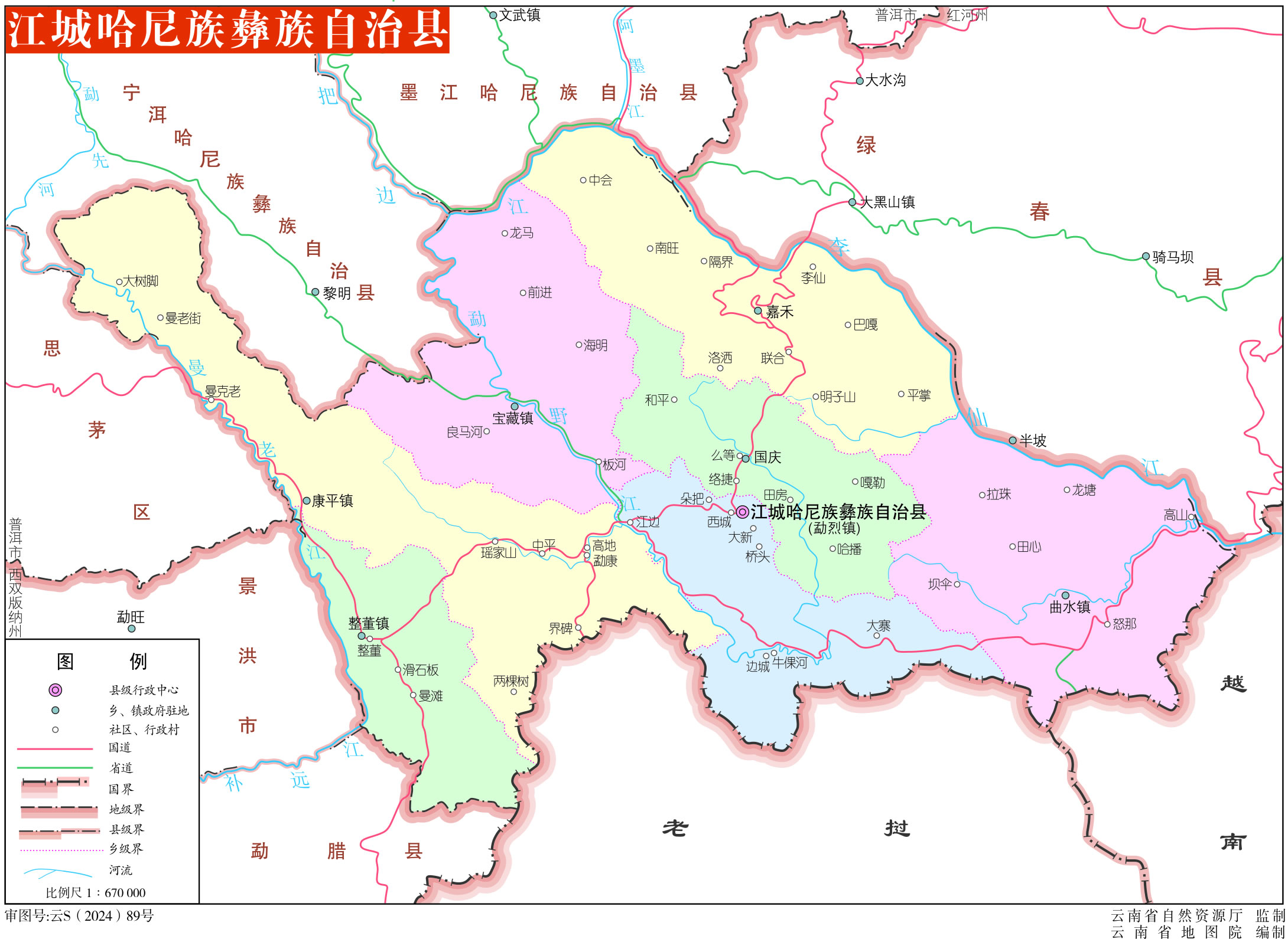 江城哈尼族彝族自治縣轄5個(gè)鎮(zhèn)、2個(gè)鄉(xiāng):
