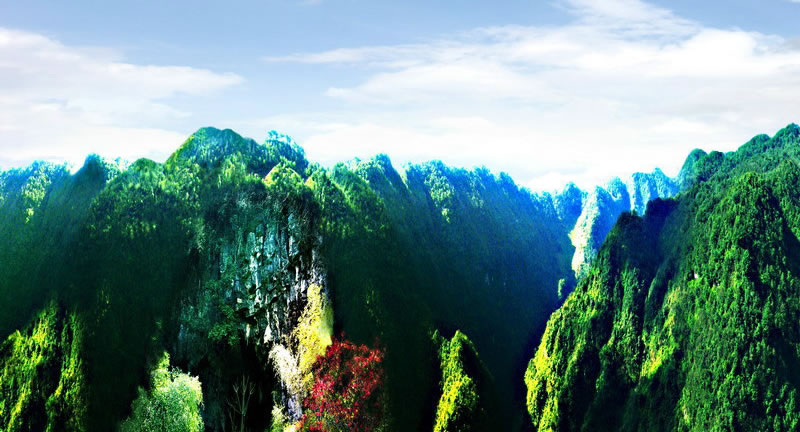 地形地貌 富源縣地貌為中山山地,突出的峽谷地貌,其特征為河流縱向切割、山川南北展布、地形破碎、山高谷深、坡陡流急、巖溶發(fā)達(dá)、河谷階地狹窄,耕地零星分散。烏蒙山支脈自北向南縱貫全境,南北長(zhǎng)約103千米,東西寬約54千米,兩頭寬、中間窄,呈薯形相銜狹長(zhǎng)地形。全境地勢(shì)北高南低,由西北向東南略有傾斜。境內(nèi)最高海拔為西北部的營(yíng)盤山,海拔2748.9米,最低海拔為東南部的特土峽谷,海拔1110米。