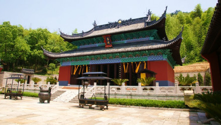 禹廟位于禹陵北側,為歷代帝王、官府和百姓祭祀大禹的地方。禹王廟坐北朝南,周以丹墻。是一組宮殿式建筑群,總體布局沿南北軸線展開,前低后高,左右對稱,主要建筑物自南而北,依次為照壁、岣嶁碑亭、欞星門、午門、拜廳、正殿,依山勢逐漸上升,禹王廟之照壁與南墻相連。順山勢逐步升高,殿前鋪設石階。配以窆石亭、宰牲房、菲飲泉等景點。(史籍記載,夏啟和少康都曾建立禹廟,但已難考)。今廟始建于南朝梁武帝大同十一年(公元545年),歷代屢建屢毀,F存大殿建筑系民國二十二年(公元1933年)重建,其余部分為清代重建。