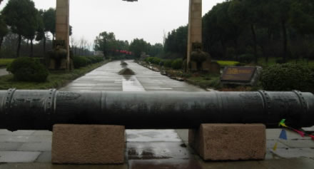 龍杠,位于入口處的大禹陵牌坊前一橫臥的青銅柱子,名龍杠。龍杠兩側各有一柱,名拴馬樁。凡進入陵區(qū)拜謁者,上至皇帝,下至百姓,須在此下馬、下轎,步行入內,以示對大禹的尊崇。龍杠上有“宿禹之域,禮禹之區(qū)”的銘文。