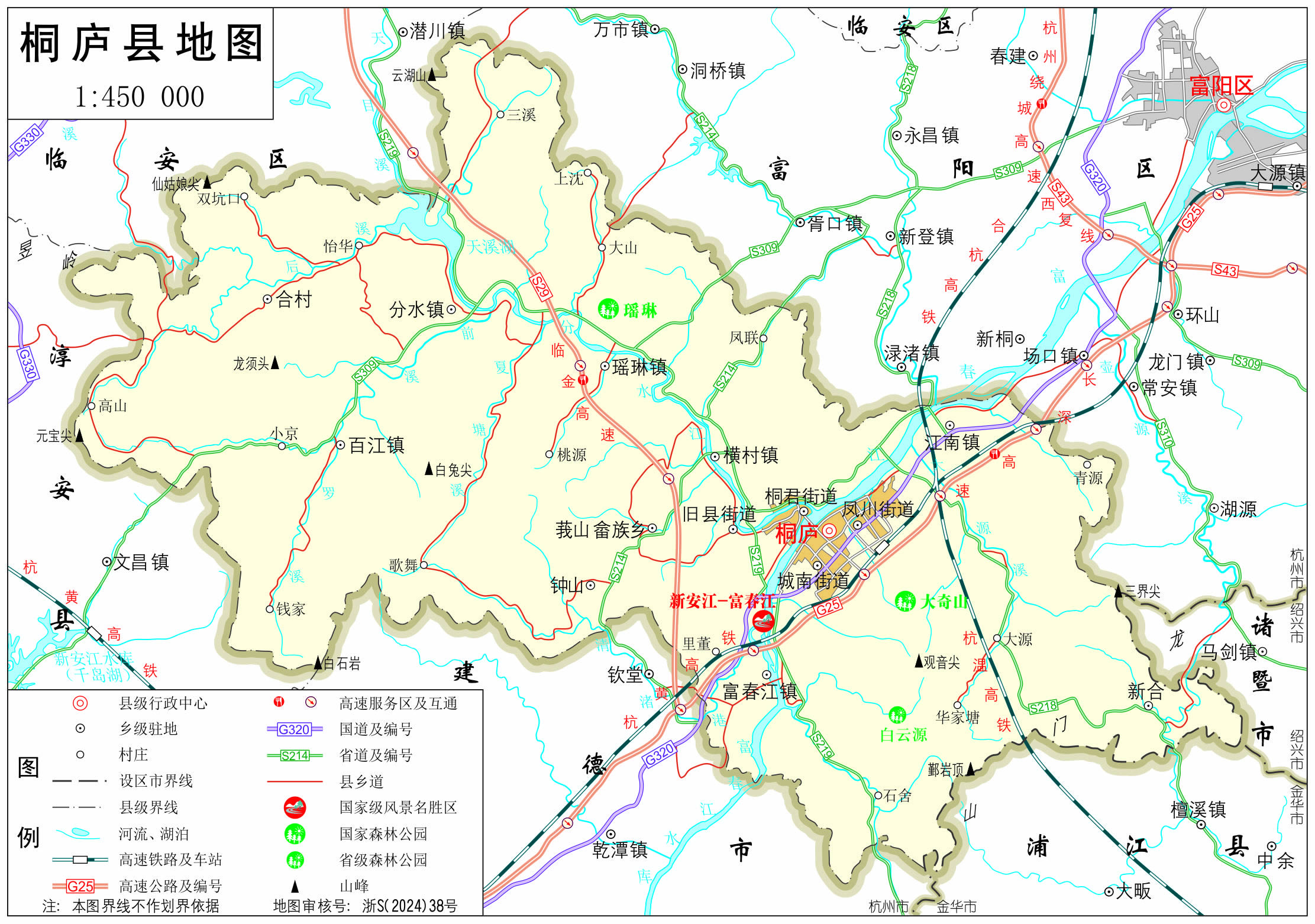 鎮(zhèn):富春江鎮(zhèn)、橫村鎮(zhèn)、分水鎮(zhèn)、百江鎮(zhèn)、瑤琳鎮(zhèn)、江南鎮(zhèn)