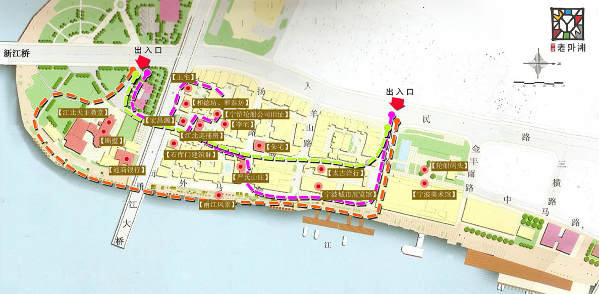 老外灘于1844年開埠。唐宋以來就是最繁華的港口之一,也是著名寧波幫的發(fā)祥地。它曾是“五口通商”中最早的對外開埠區(qū),比上海外灘還早20年。寧波老外灘,通過保存歷史建筑和街區(qū)風貌,植入新都市文化,將厚重的歷史與發(fā)展的愿望完美結(jié)合在一起。由文物、舊、漸舊、新的建筑物構(gòu)成了不同歷史時期的見證和載體,著意打造著上世紀三四十年代的韻味。如今的老外灘骨子里透出現(xiàn)代意味,是一個集吃、住、玩、休閑、購物、娛樂為一體的時尚消費中心。