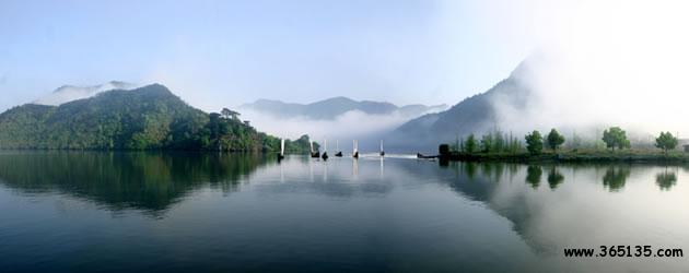 仙宮湖:崛立在云和縣緊水灘的浙南第一壩緊水灘水電站大壩,將滔滔甌江攔腰鎖住。在水電站建成的同時(shí),浙南的茫茫林海中奇跡般地出現(xiàn)了一個(gè)巨大的人工湖緊水灘庫湖。1993年8月9日經(jīng)地區(qū)行署批準(zhǔn),改名為仙宮湖。放眼全湖,碧波蕩漾,晶瑩似鏡,周圍千姿百態(tài)的奇巖異峰、浩如煙海松濤,點(diǎn)綴湖邊的村莊、田野和山林,好似一幅色彩斑斕,絢麗多姿的山水畫。這里廣闊的湖面,煙波浩渺,水山相連,望不盡頭。與千島湖相比,雖無“千島”之態(tài)。但湖中島嶼正在一個(gè)個(gè)形成。隨著蓄水位的漸漸增高,將會(huì)出現(xiàn)更多“湖心之島”。那晶瑩澄碧的湖水在陽光的照射下,閃著瀲滟的波光,似一顆閃眼的明珠,鑲嵌在群山峻嶺之中。湖兩旁的松杉。翠竹掩映于湖唇,好似繡上一道花邊,君若泛舟湖中,其可謂“人行明鏡中”了。倘若天氣作變,更給景色增添妙異的變幻。晴天,頭上藍(lán)天萬里,腳下碧波千頃,點(diǎn)點(diǎn)白帆移動(dòng),轟轟船只掠過,舉目望去,山水一色;回首顧盼,卻置身于綠水青山之中。雨天,霧靄茫茫,層林碧水連成一片,人在湖面,有身置云霧瓊樓仙境之感。尤其在赤石、龍門一帶,水域?qū)掗,島嶼列布,湖區(qū)四周還有“九潭十八灣”、“夏洞天”、“龍老洞”、“蝴蝶洞”、“牛頭山”等勝景。仙宮湖不愧為特具魅力的旅游勝地。