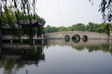 南潯文園位于南潯風(fēng)景名勝區(qū),四周有河流,中間有湖泊,北面靠近江南水鄉(xiāng)一條街,又與小蓮莊、嘉業(yè)堂藏書樓等名勝靠近。南潯文園整體建筑分南北兩部分,由天橋相連,南園主要為江南園林,周圍建有兒童樂園、大型樹樁盆景園、名人詩廊等;北園以湖心文昌閣為中心,周圍布有名人詩廊、紅軍長征紀念館、吳壽谷藝術(shù)館、徐遲紀念館、明代石獅等景點。