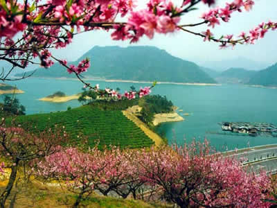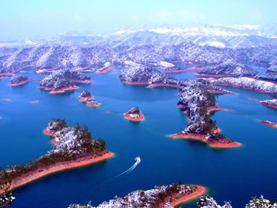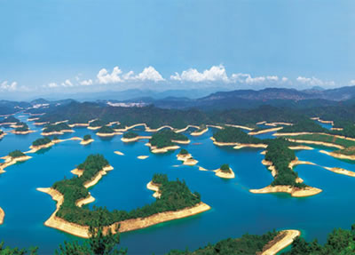 千島湖,是一個(gè)美麗的湖 。湖中那1078個(gè)島嶼,姿態(tài)各異,風(fēng)姿綽約。春游湖上,布滿山花的島嶼,是一個(gè)個(gè)天真爛漫的村姑;夏日游湖,人們多想在這碧波中逐浪暢游;秋山紅葉,使人想起"霜葉紅于二月花"的詩(shī)句,雪滿湖山,松挺山崖,又是一幅王維筆下的詩(shī)畫(huà)圖。