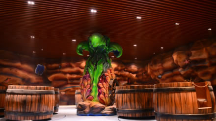 該館的“溶洞真景”位于“山之王國”地下,洞內(nèi)有石筍、石塔、石花等鐘乳石。此外,“水晶幻境”在燈光的配合之下,形成了溶洞內(nèi)的獨特景觀。